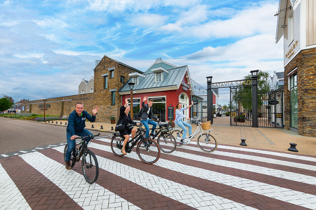 Batavia Stad is een ideale bestemming voor een leuk dagje uit voor het hele gezin. Fashion, food & nog veel meer. Centraal gelegen in Nederland, in Lelystad. Batavia Stad Fashion Outlet is makkelijk bereikbaar met het openbaar vervoer, de fiets en de auto. Parkeren is betaalbaar en er zijn laadpunten voor elektrische auto’s. Batavia Stad is 7 dagen per week open. De straten in het centrum zijn sfeervol, ruim en schoon, de pleinen zijn groen. De 150 winkels bieden een ruime keuze aan stijlvolle collecties met een korting van 30% tot 70%. Hier zijn meer dan 250 nationale en internationale merken te vinden met de laatste trends in mode, maar bijvoorbeeld ook in sieraden en keukenwaar. Zet je nieuwe outfits in de auto en maak je dag compleet met een van onze thematische fietsroutes. Zo wordt winkelen met het gezin echt een feestje! Een compleet dagje uit bij Batavia Stad Fashion Outlet.